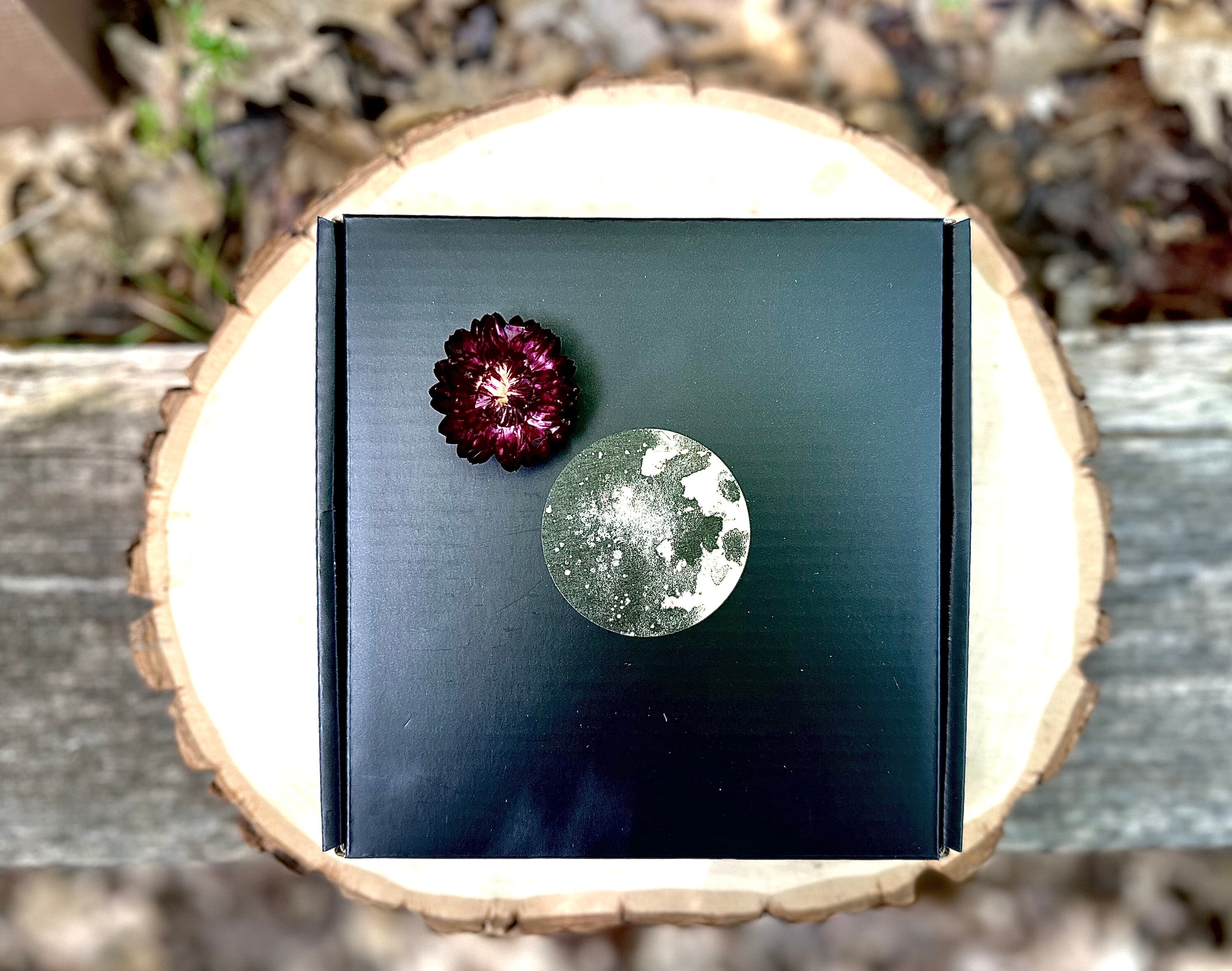 Packaged in a black cardboard tuck box, with crinkle paper + dried white sage leaf, making this lovely set ready to be gifted as soon as it arrives.