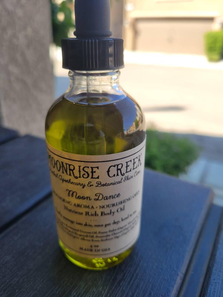 This beautifully aromatic oil blend nourishes heals, and protects, while grounding your senses, and relaxing your body. Let these luxurious botanical oils work their plant magic from head to toe. Best results if used after with our Moon Dance Body Scrub.